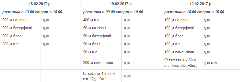 Програма змагань: