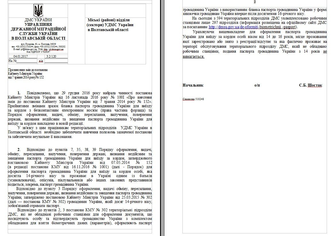 Це не вигадка Кременчуцького ЦНАПу, а постанова Державної міграційної служби