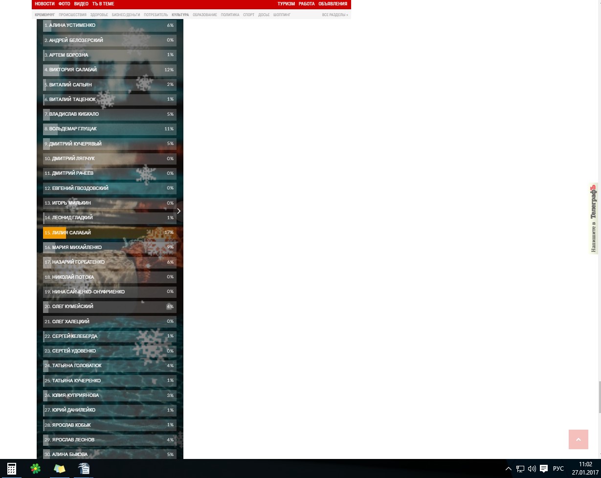 Результаты голосования на 11.00 27 января: