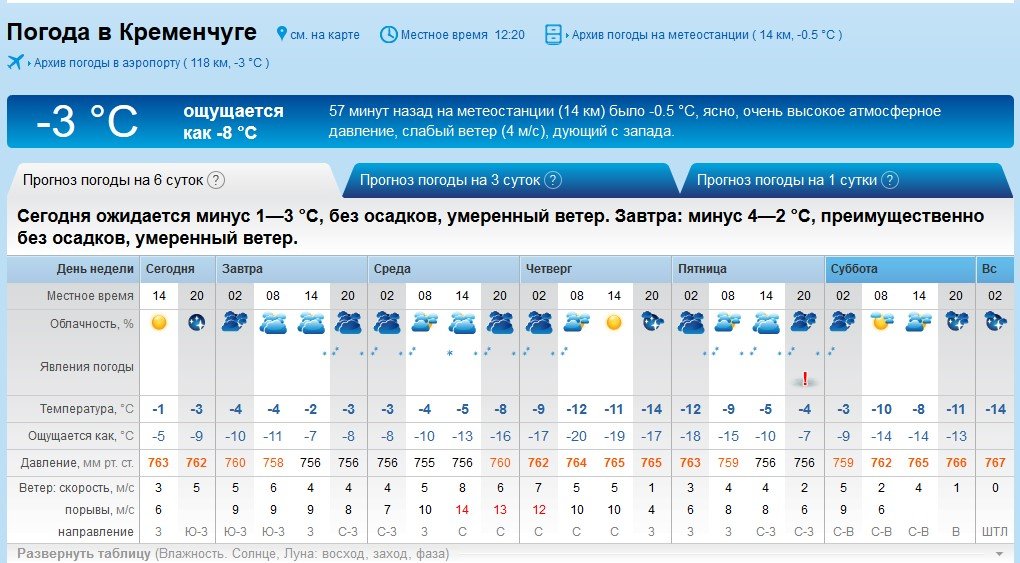 Rp5 такий сильних морозів не прогнозує, мінімум, який вони обіцяють Кременчуку - це -14°С у четвер, 26 січня, та неділю, 29 січня. Невеликий сніг слід очікувати щодня з вівторка, 24 січня, по суботу, 28 січня. Також там попереджають про можливий замерзаючий, переохолоджений туман з видимістю менше 1 км вночі у п'ятницю, 27 січня.