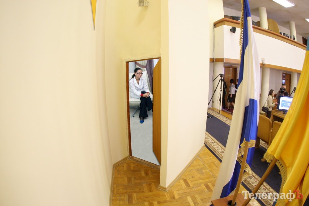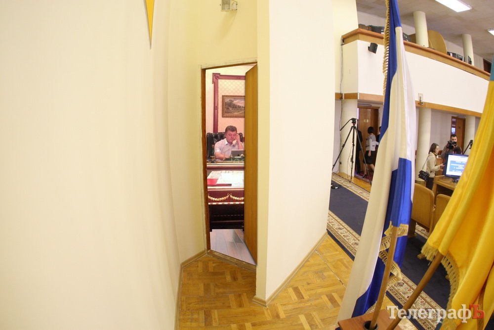 Во время сессии горсовета 31 января мэр города Виталий Малецкий несколько раз отлучался в нишу за своим столом.