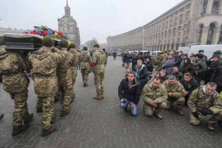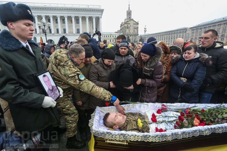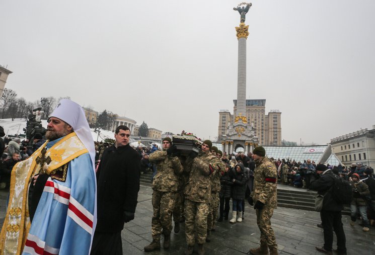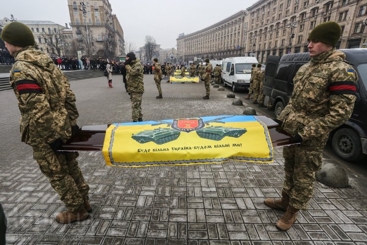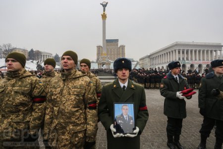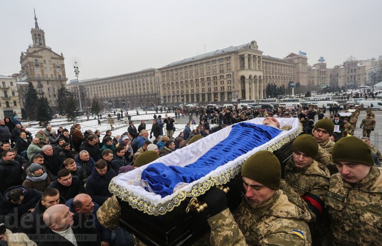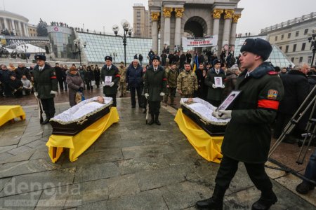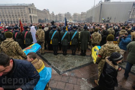 1 лютого на Майдані Незалежності в Києві попрощалися з сімома воїнами, загиблими під Авдіївкою в результаті наступу терористів "ДНР".