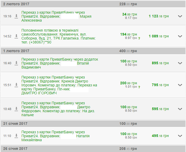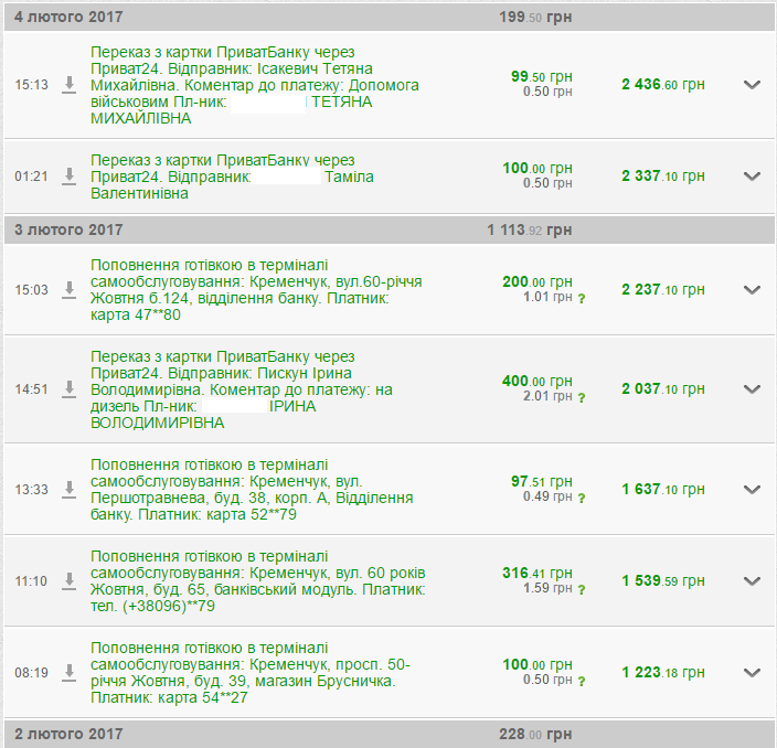 З 26 січня по 4 лютого кременчужани на картку перерахували 1413,42 грн