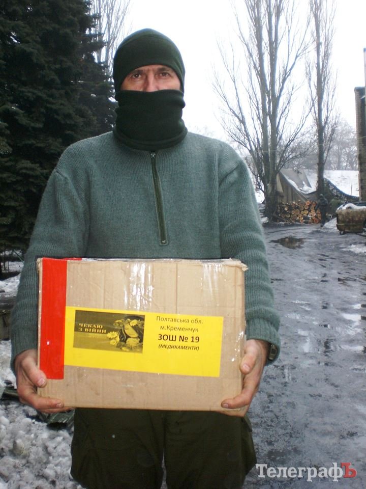 Зі смаколиками бійцям передали маскувальні сітки від волонтерів Кременчука «Макові зерна». Також передали 10 ящиків ковбаси та 25 маскувальних халатів від Педучилища.