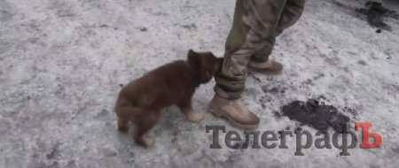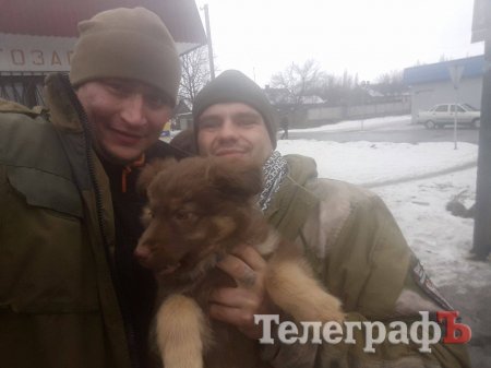 З Кременчука на передові позиції, разом із бійцями Правого сектору відправився собака. Песик на прізвисько ДУК (Добровольчий український корпус Правого сектора - ред.) одразу показав свій бойовий характер. Маленький «правосєк» напав на великого «правосєка»:)