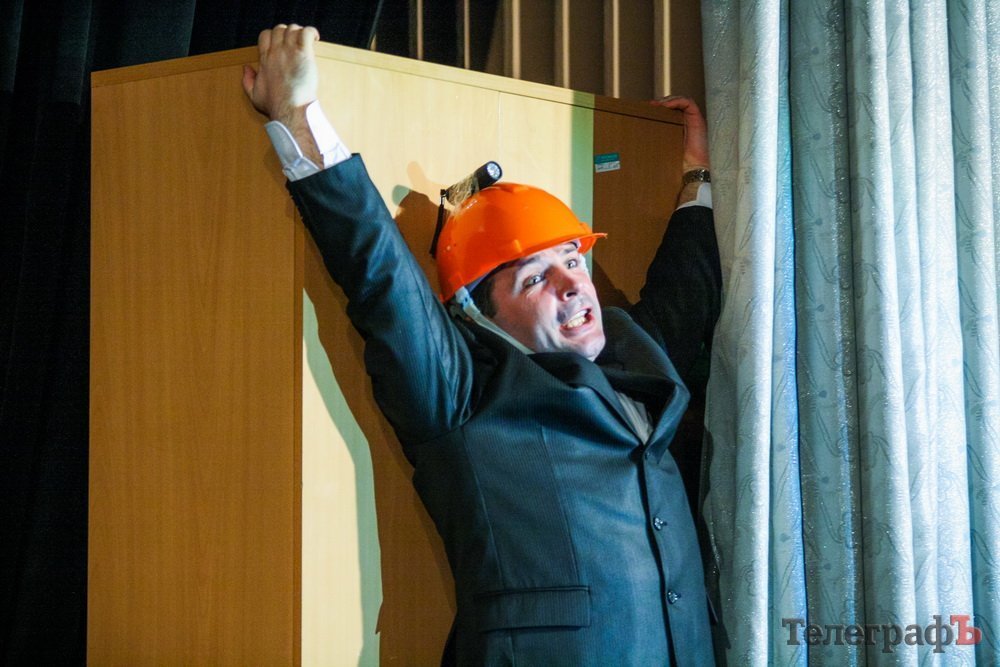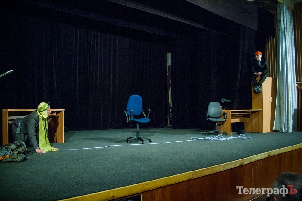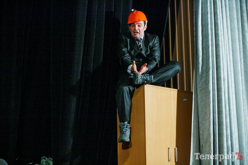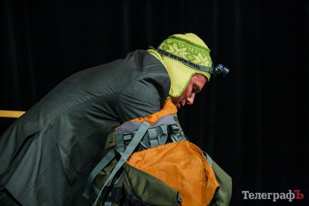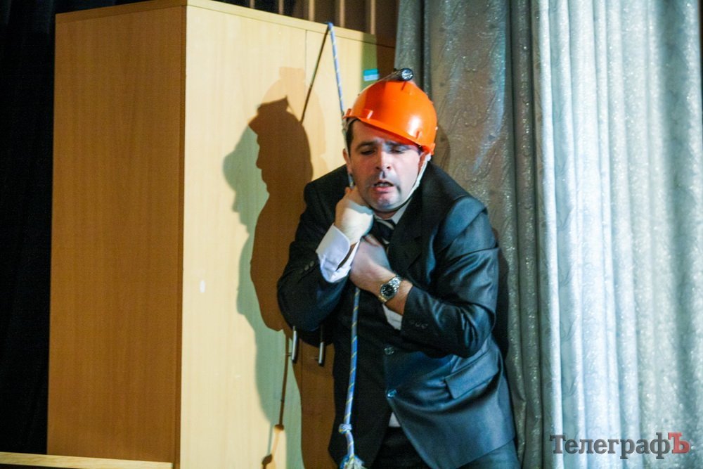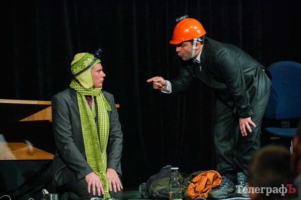 5 февраля кременчугский театр комедии «МО», ранее известный как «Аскал», представил зрителям спектакль «Альпинисты» по пьесе Гарбриеля Ару. Привыкший к аллегориям зритель и впрямь начал верить, что шкаф, на который взбирается неутомимый шеф — гора на высоте 2 000 метров. Вот только смущает одно: а почему на альпинистах офисные костюмы???