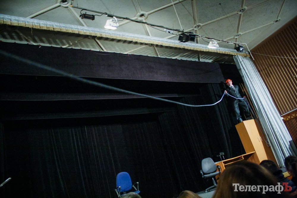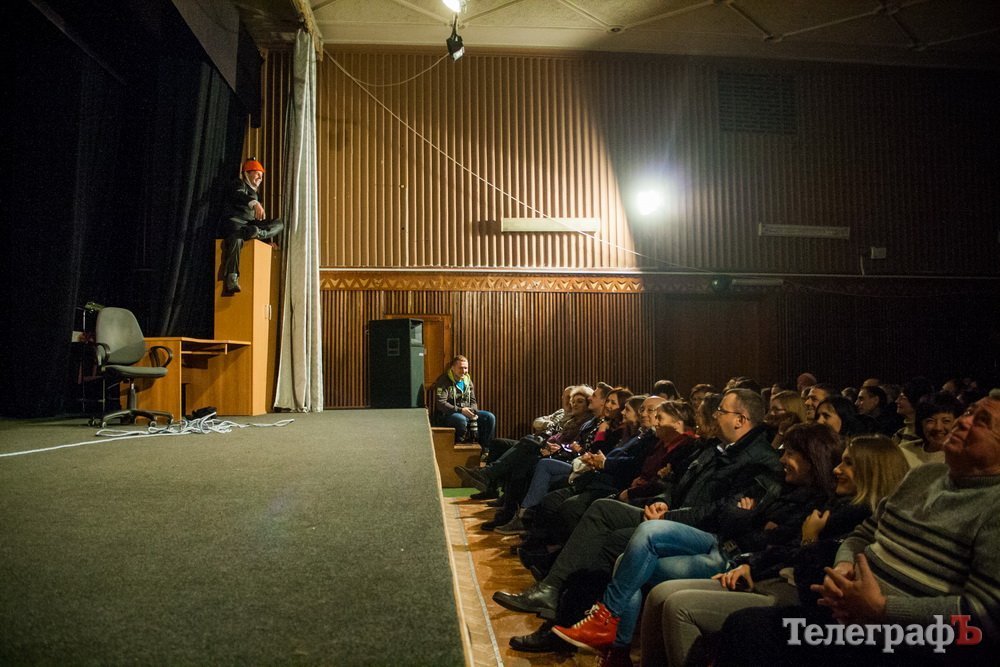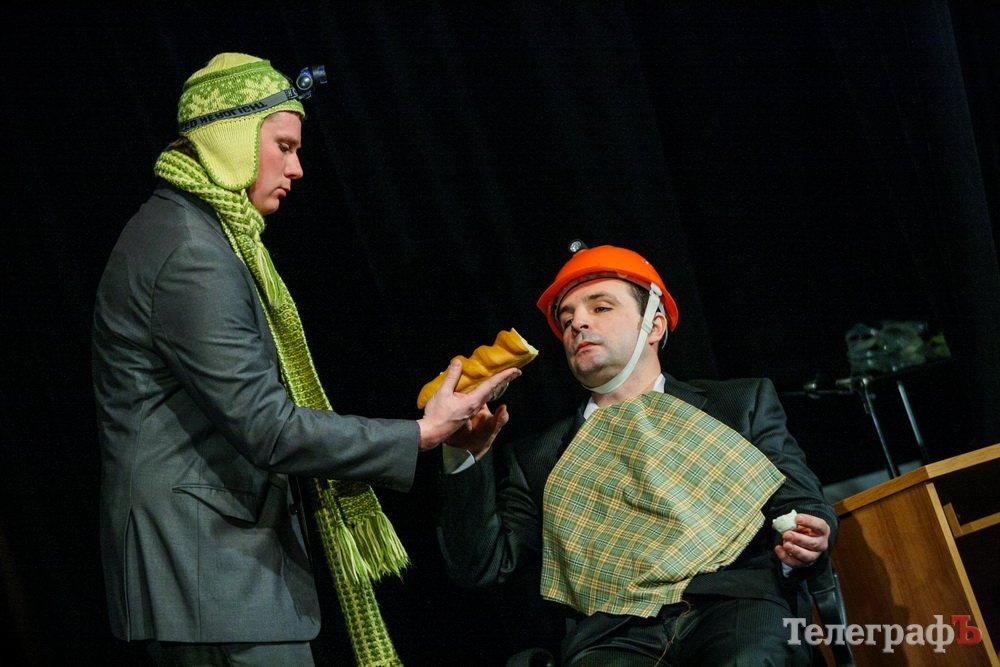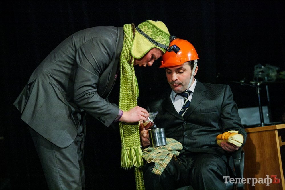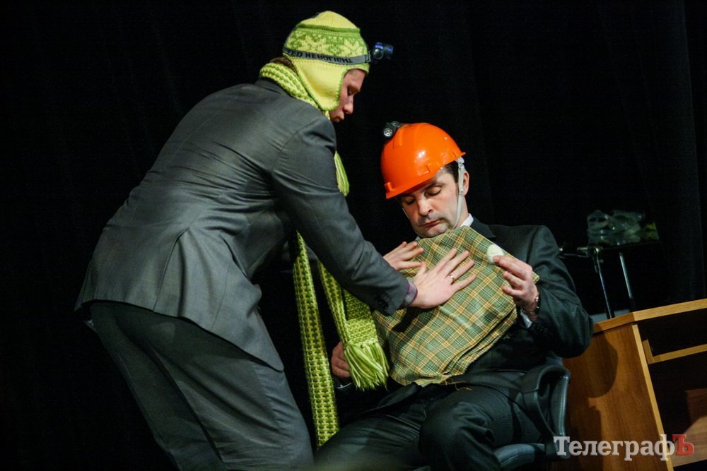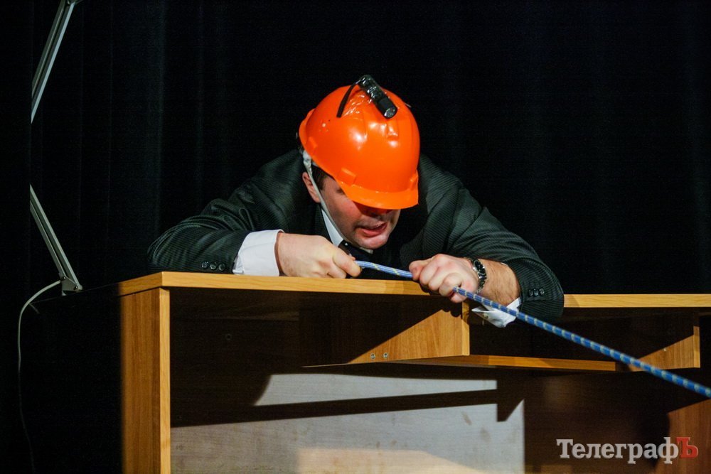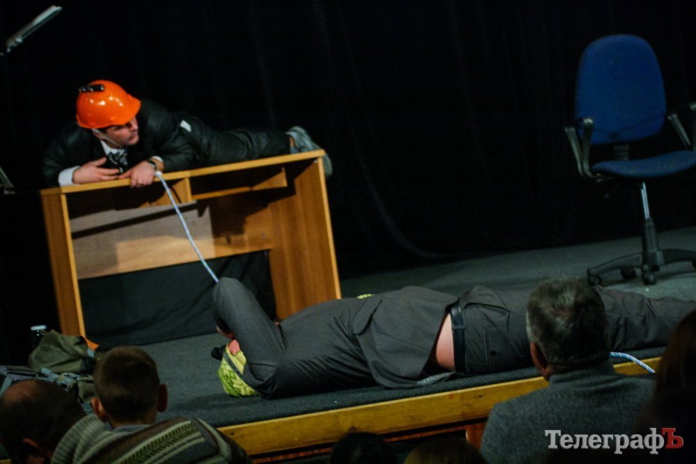 5 февраля кременчугский театр комедии «МО», ранее известный как «Аскал», представил зрителям спектакль «Альпинисты» по пьесе Гарбриеля Ару. Привыкший к аллегориям зритель и впрямь начал верить, что шкаф, на который взбирается неутомимый шеф — гора на высоте 2 000 метров. Вот только смущает одно: а почему на альпинистах офисные костюмы???