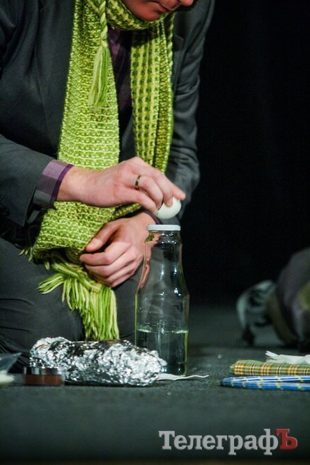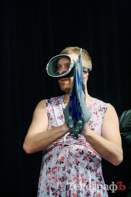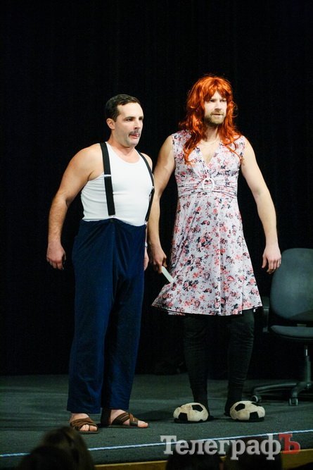 А перед началом спектакля Максим Воробьев и Дмитрий Рыбалка разыграли интермедию о разговоре с сыном, которого «учат жизни» отец и мать… Оба хотели играть отца. Уж слишком незавидная роль отведена «матери» в рутине жизни.