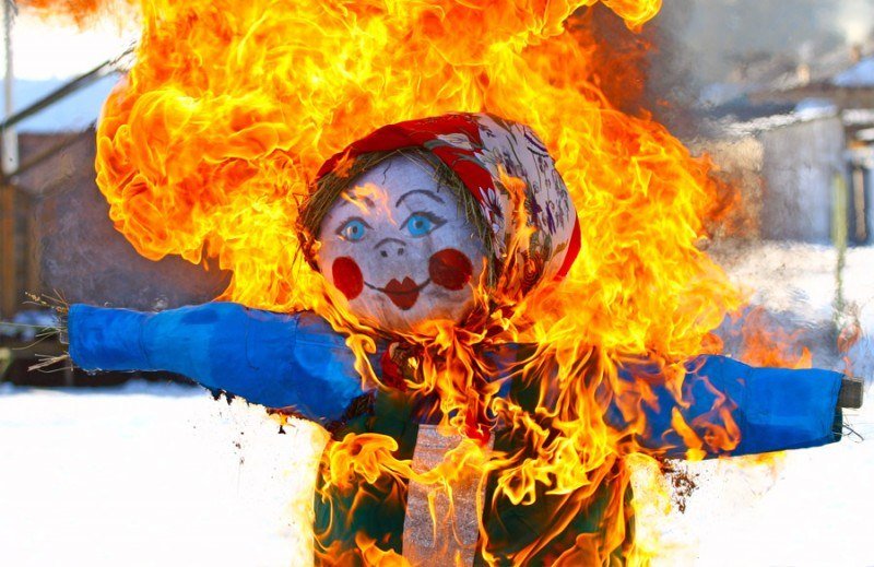 Традиция сжигать соломеное чучело очень древняя, дохристианская. Она выражает идею векового и ежегодного обновления. Такое чучело звали Масленицей. Делали её из соломы в понедельник, наряжали и всю неделю носили по селу, чтобы в конце недели сжечь. Делали это обычно в субботу. Чучело из соломы на носилках несли до конца деревни, и там, с песнями, «хоронили»: устраивался большой костёр и в нём сжигали Масленицу. Вокруг костра веселились: пели песни, плясали. В костер подбрасывали старые ненужные вещи, чтобы предать огню все грешное, печальное и плохое. От того как все горело, зависел приход ранней весны. Ведь правильно проводить надоевшую Зиму (быстрое сжигание Чучела), значит, помочь Весне. Пеплом удобряли поля для обилия будущего урожая.