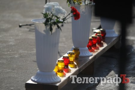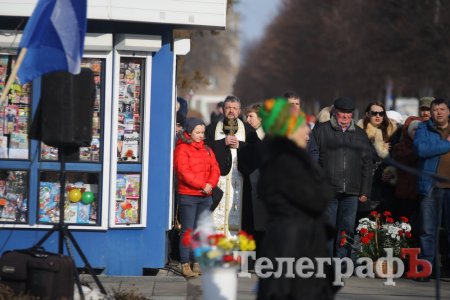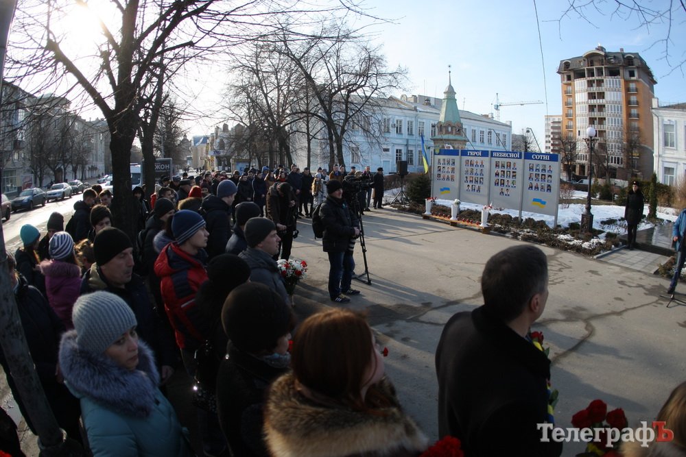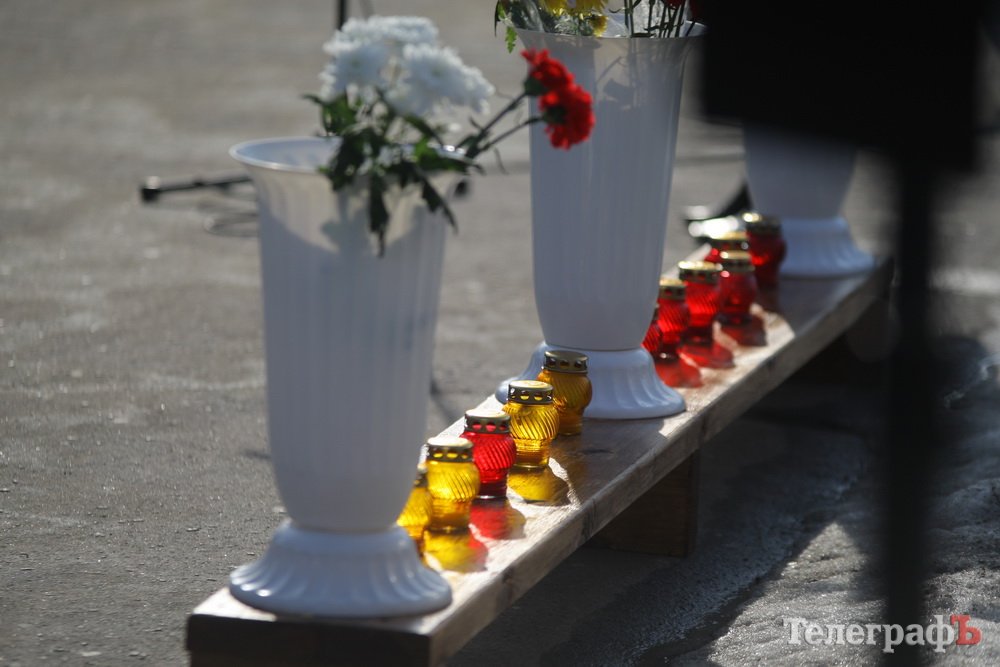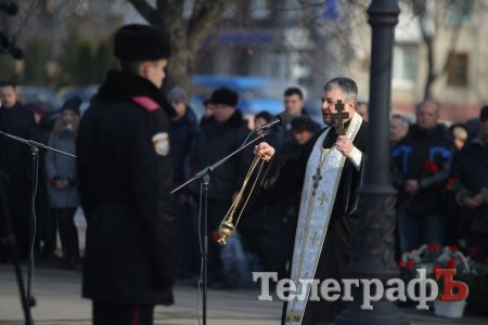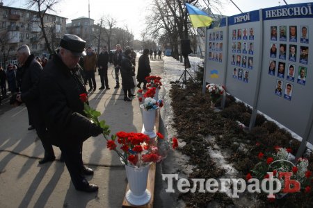 Кременчужани хвилиною мовчання вшанували пам'ять загиблих Героїв Небесної Сотні, а настоятель Свято-Миколаївського Собору Протоієрей Володимир Макогон відслужив панахиду за загиблими.