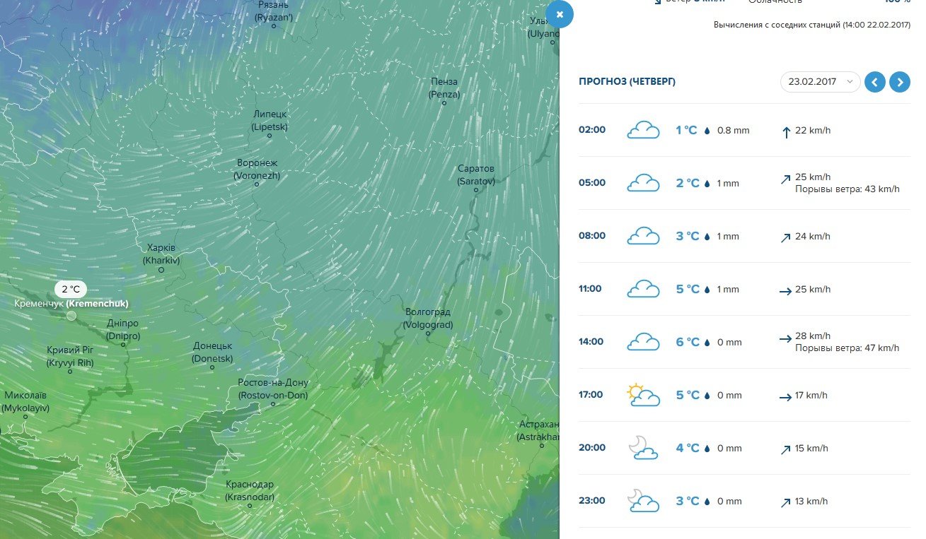 За повідомленням Полтавського обласного центру з метеорології завтря, 23 лютого, протягом доби по області очікуються пориви південно-західного вітру 15-20 м/сек.