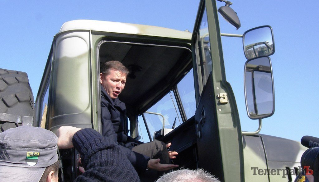 У першу чергу Олег Ляшко відвідав кременчуцький КрАЗ. Там для нього влаштували показові виступили військових КрАЗів. Потужні машини долали бетонні та гравійні перепони, лідер радикалів спостерігав за дійством з трибуни, іноді енергійно протягував руку в бік КрАЗів, можливо, наставляючи їх на шлях істинний.