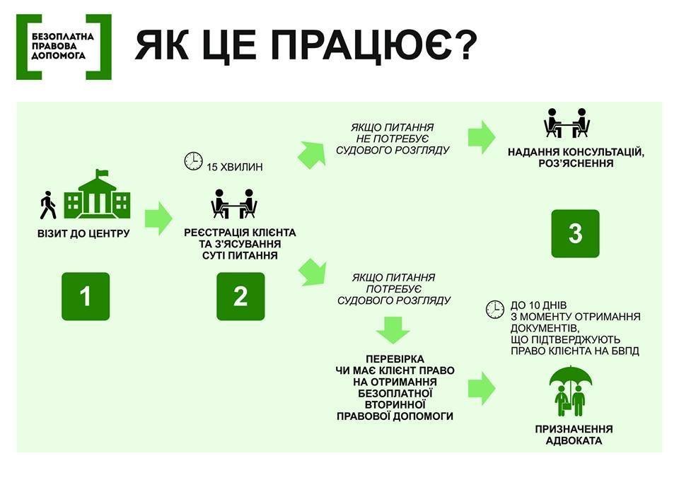 - надає безоплатну вторинну правову допомогу (крім захисту);