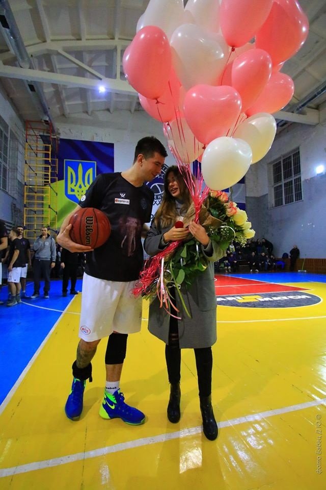 Баскетболіст «Кременя» Ярослав Скрипець освідчився коханій Юлії під час матчу з "Черкаськими мавпами".