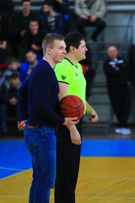 Перед матчем символічне вкидання мяча зробив захисник хокейного клубу "Кременчук" Дмитро Ігнатенко. Команда напередодні стала переможцем регулярного чемпіонату України з хокею.