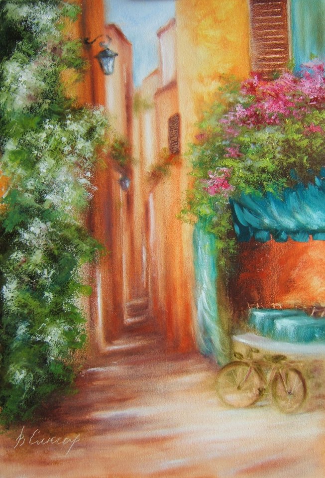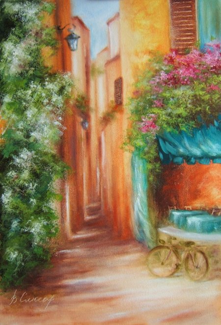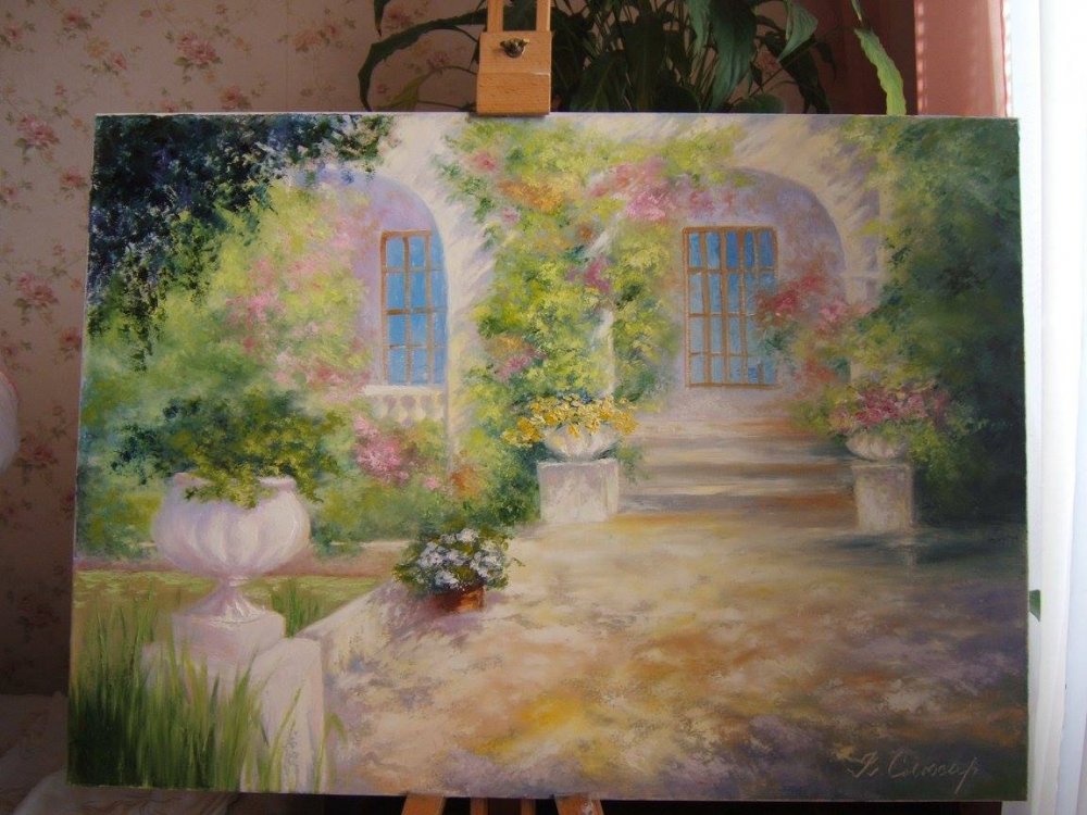 Большая часть работ художницы исполнена мастихином*. Валентина считает этот инструмент "почти универсальным", так как с помощью него получается не только объем, но и акварельные эффекты.