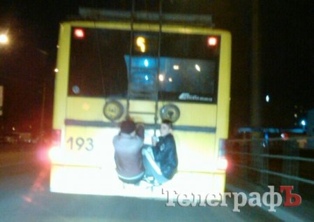 В Кременчуге на просп. Леси Украинки водитель заснял, как двое подростков катаются на троллейбусе, прицепившись к нему сзади. Спрыгнули на ходу. Вы уверены, что «синего кита» боятся надо?