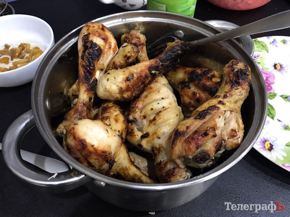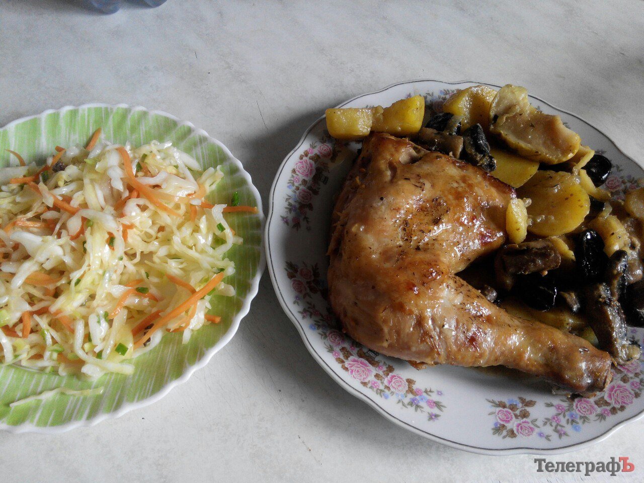 В понедельник запекла курочку с яблоками, черносливом и грибами. Корейская капусточка добавила колорита.