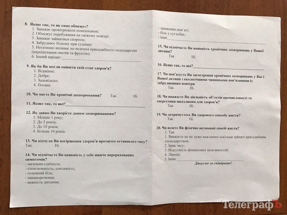 В Кременчуге внедрили анкетирование, чтобы узнать субъективное мнение граждан относительно влияния промышленных предприятий на здоровье жителей. Об этом на заседании 23 марта сообщила директор ООО «Промэкология» Елена Корцова.