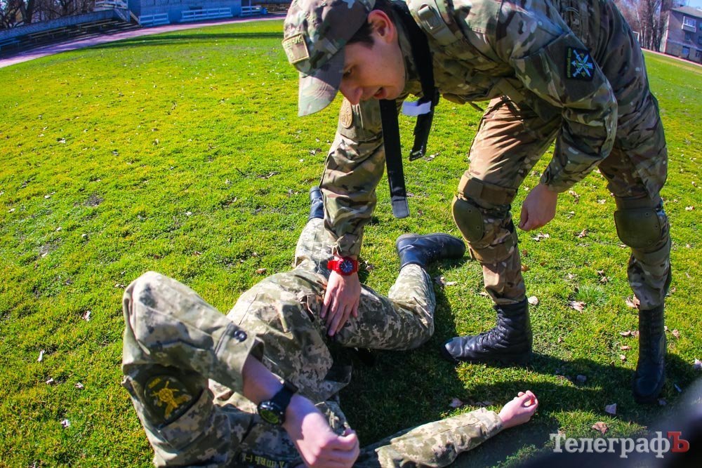 ТакМед преподавали студентам Кременчугского национального университета кафедры военной подготовки офицеров запаса по контракту ХНУВС. Слушатели отработали наложение турникетов – как себе, так и боевым товарищам, отработали эвакуацию раненого – под звуки взрывов.