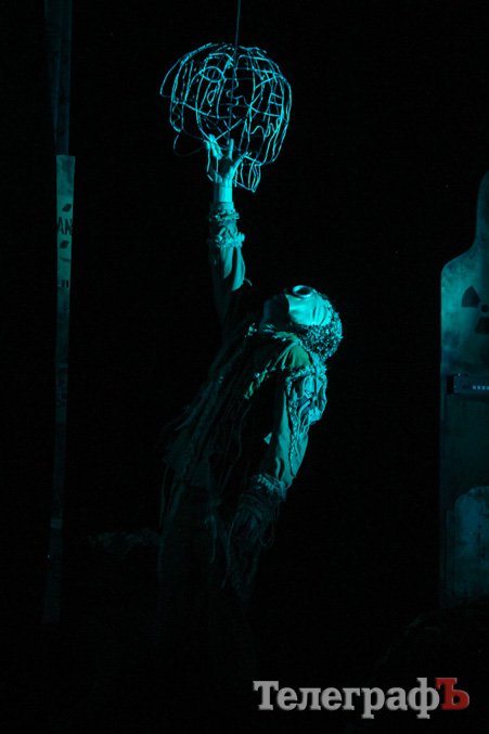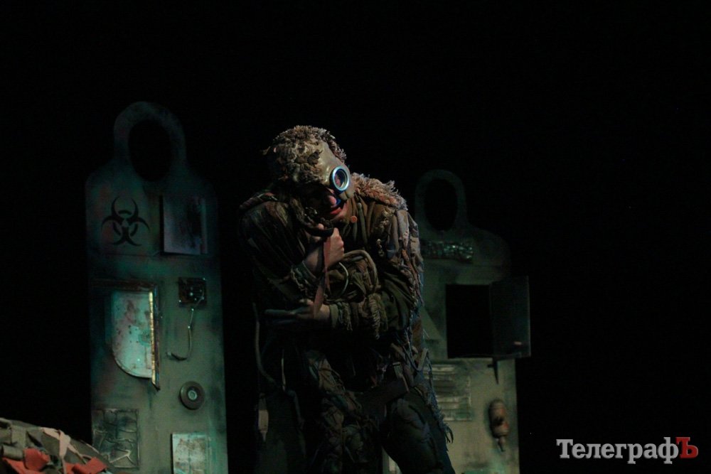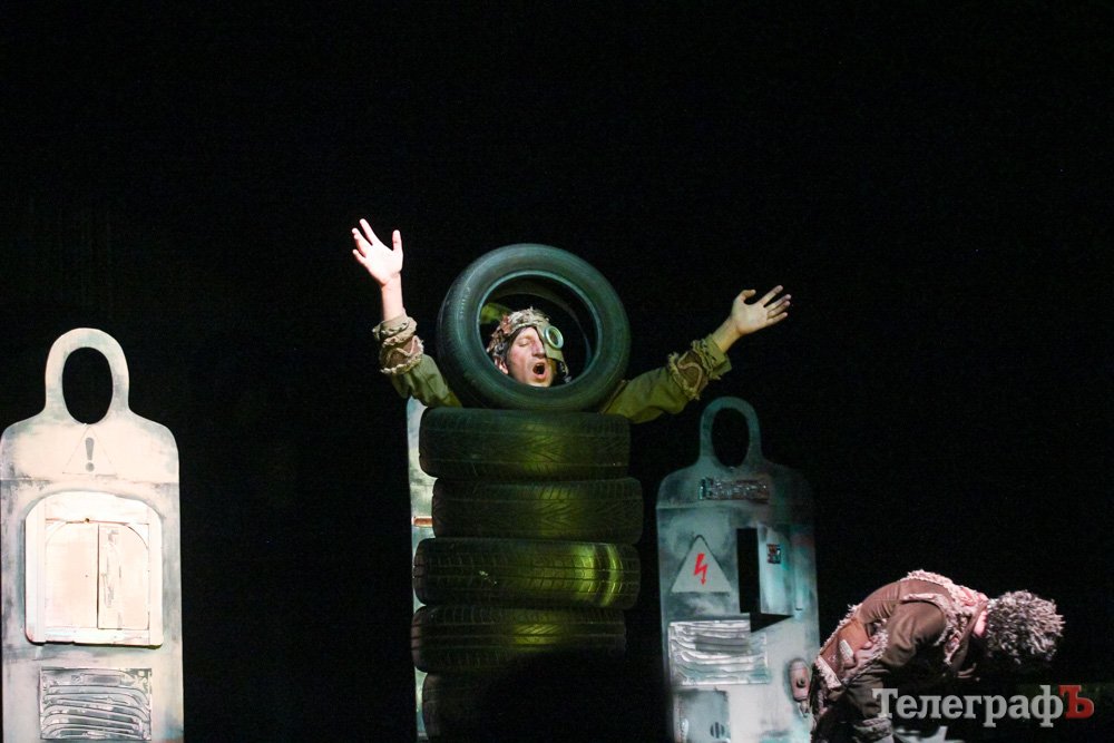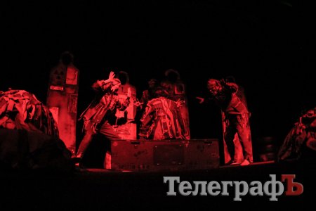 Мала зала МПК була переповнена. Воно й не дивно, адже такої вистави кременчуцький глядач ще не бачив. Постановка емоційна, складна і постмодернова. Навіть почалася вона з вибуху. Сцена і зал, більшість часу, заховані в темряві. Практично увесь час на сцені знаходиться Гамлет (актор Молодіжного театру, заслужений артист України Олексій Биш), який веде болісно-хворобливий монолог. Міць і гіркота, з якою грає Олексій Биш, зачаровують, вони цілком гідні класичного «Гамлета». Але Гамлет у п’єсі не є шекспірівським героєм, він складніший. Він натякає, що свобода - це бути собою, залишатися таким, яким ти є, приймати рішення і брати на себе відповідальність. Якщо тобі не болить, ти не любиш, не думаєш, не відчуваєш — ти машина.