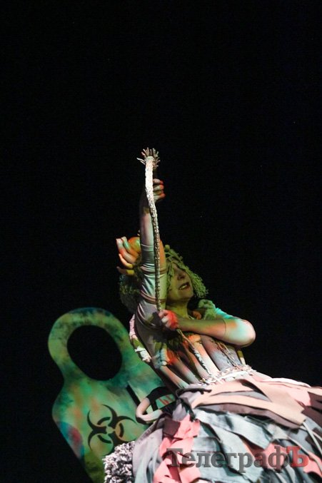 Основні теми, які піднімає постановка - це світове божевілля, війна, фемінізм, тоталітаризм, екологічна катастрофа, глобалізація... В цій яскравій постмодерністській драмі увагу глядача акцентовано на проблемі людини і божевіллі навколишньої дійсності.