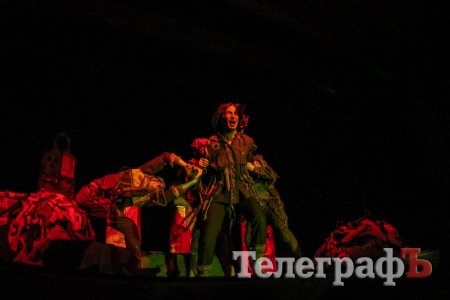 Зачепили актори і актуальні проблеми саме української дійсності - полум'я, брязкання палиць по щитам і скандуючий натовп (відеохроніка Революції Гідності) транслювалися просто на обличчя головного героя, а в перші ряди зі сцени шини, в яких був закований ідеолог Революції Гамлет.