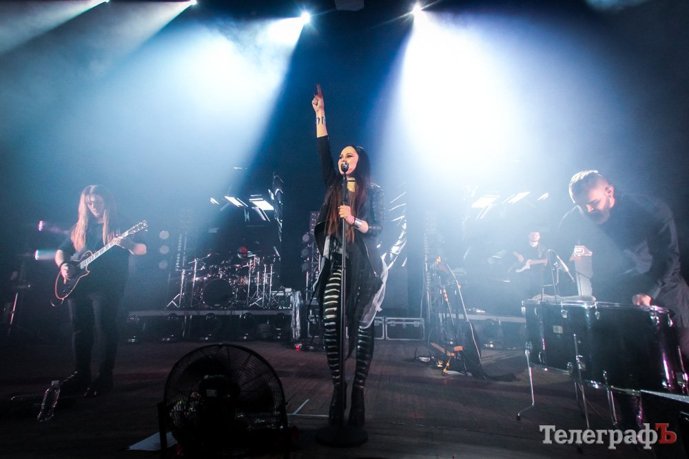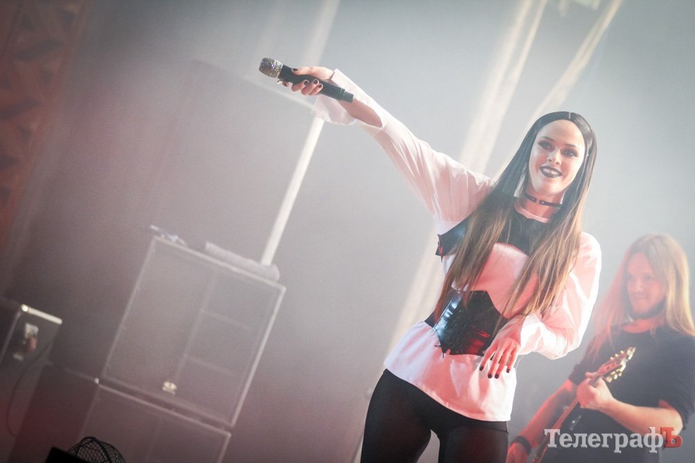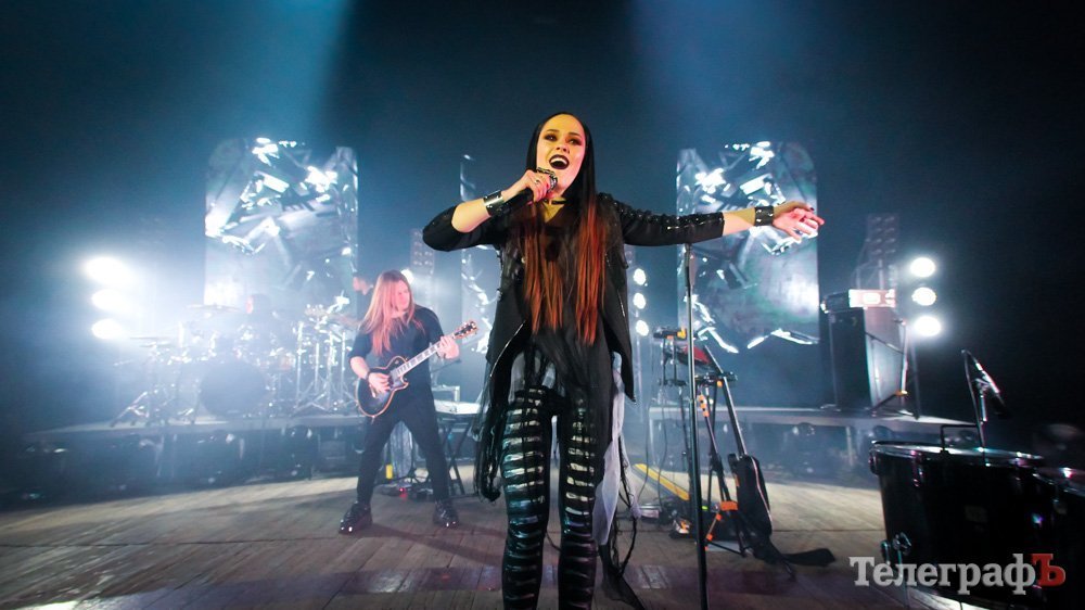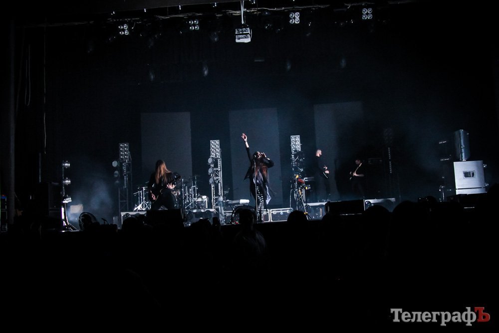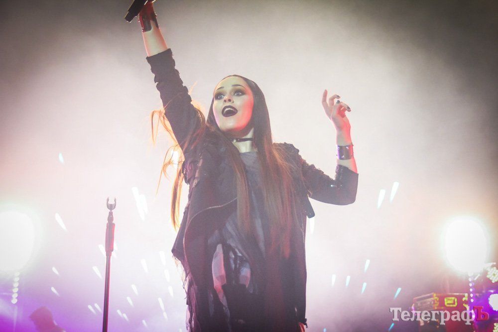 Свое выступление в Кременчуге «The Hardkiss» начали с песни, которую презентовали в конце прошлого года – «Closer». Солистка Юлия Санина вышла в вампирском образе, барабанщик – традиционно в маске смерти, а крутое световое шоу – в основном, в красных тонах – дополняло атмосферу.