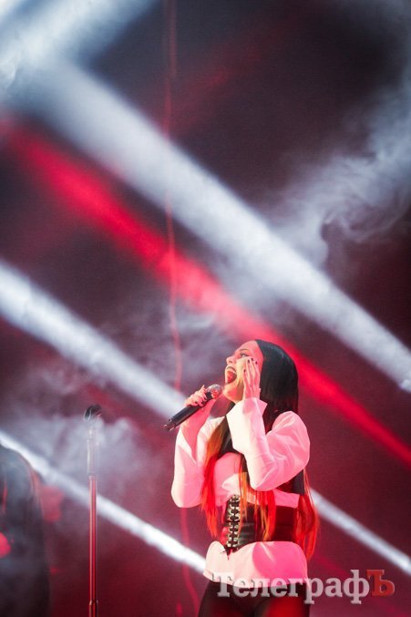 – Вы знаете, я не зря так одета, – обратилась к кременчужанам хорошенькая солистка «The Hardkiss». – Артисты – как вампиры, им нужна энергетика. Не стесняйтесь! Вы самые тихие в нашем туре. Вы можете петь, танцевать, аплодировать! Я хочу, чтобы вы были вовлечены в это шоу. Пришло время спеть вместе с вами.