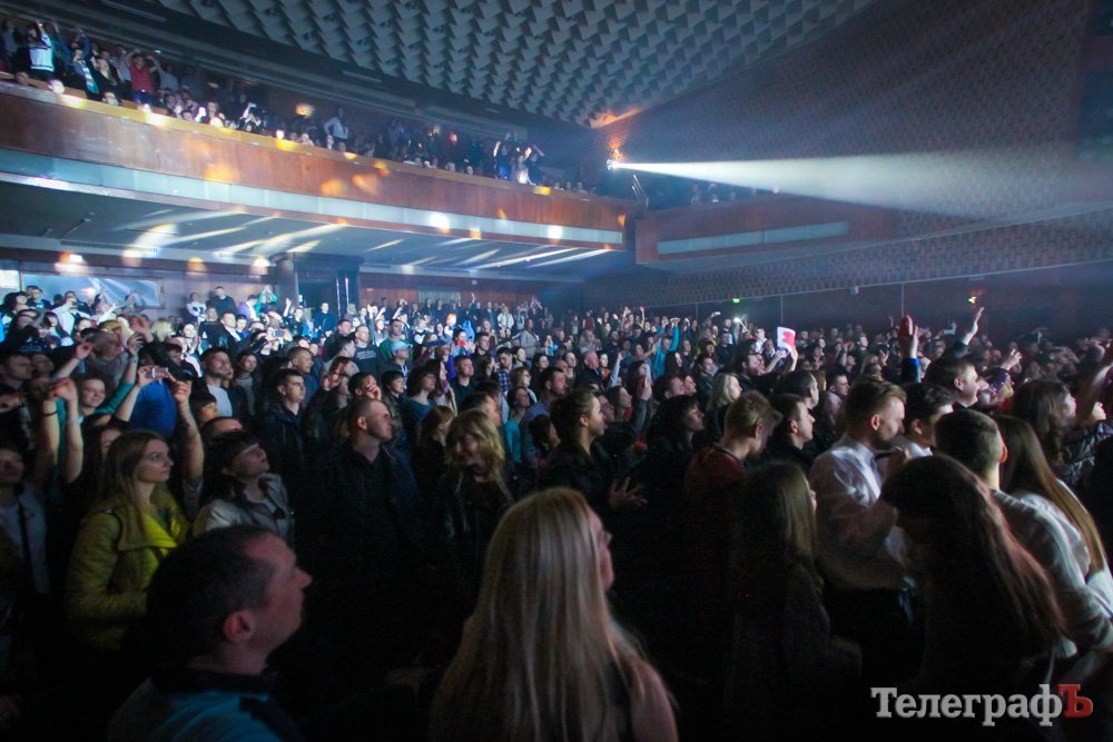 Но кременчужане разогревались долго – в «отрыв» шли отдельные островки, в основном под сценой и в проходах. Многие были заняты съемками выступления артистов на мобильные телефоны. Охрана временами приставала с тем, чтобы съемку прекратили, но это не помогало: люди кивали, и как только охранник отходил, снова брались за девайс. Только через час Кременчуг нормально разогрелся – на песне «Make-up» встали все и дальше практически уже не усаживали. А фанатки не то, что подпевали – оглушающе визжали из разных уголков зала.