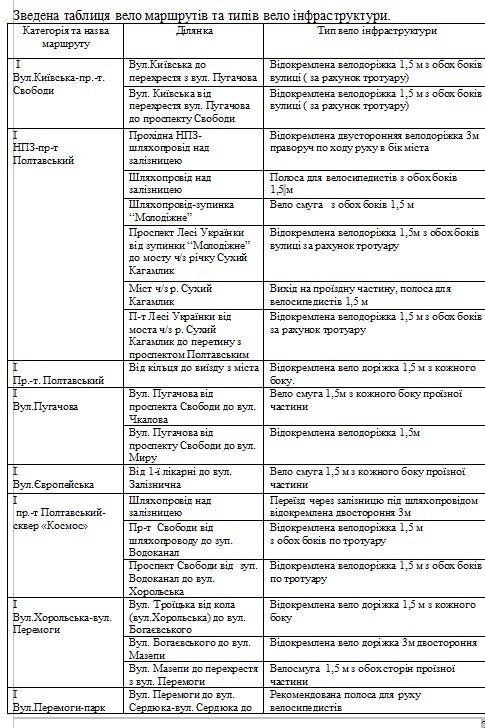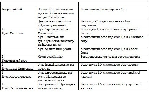 1. Велосипедні доріжки різних стандартів в залежності від місця розташування;