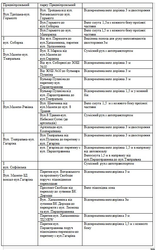 Вулиці, на яких заплановано обладнати велодоріжки: