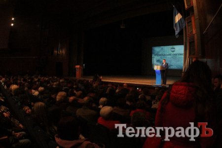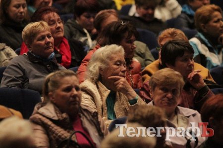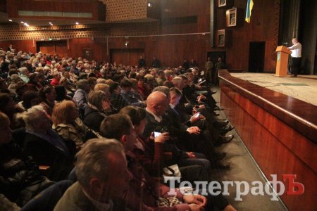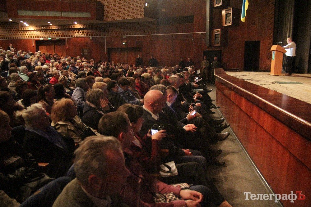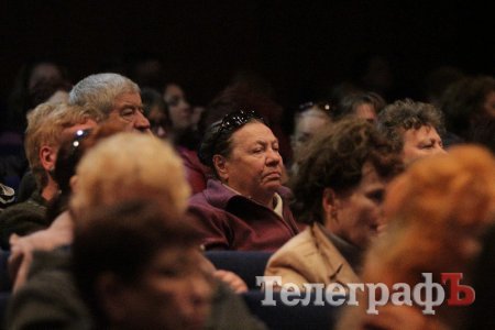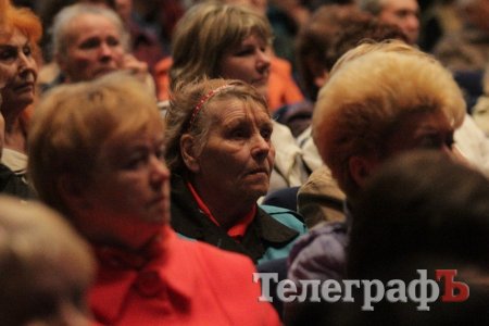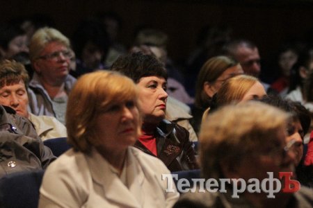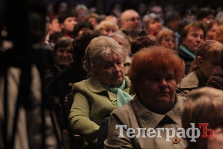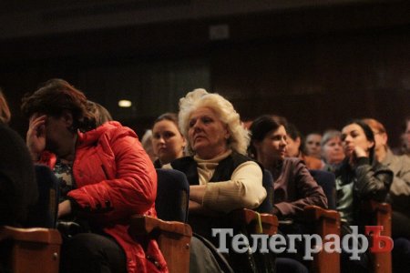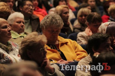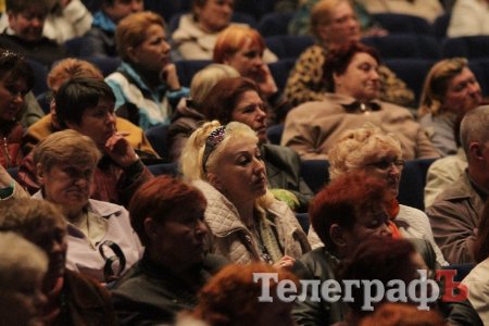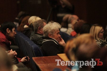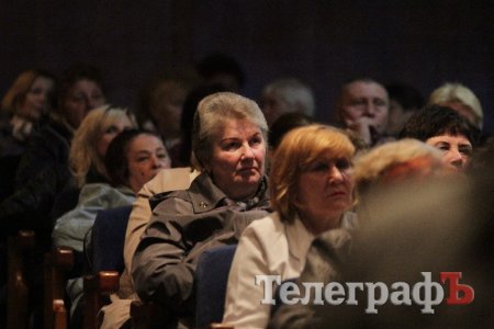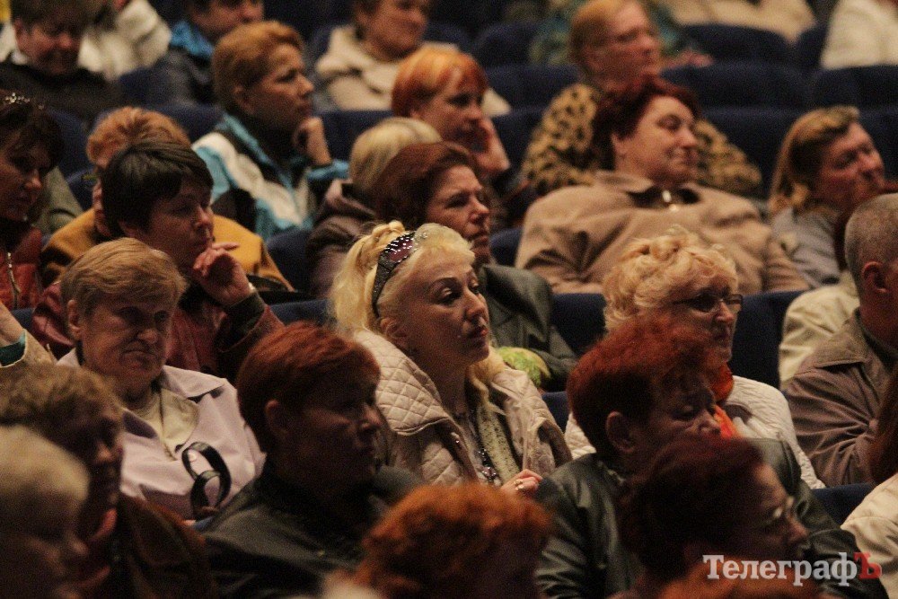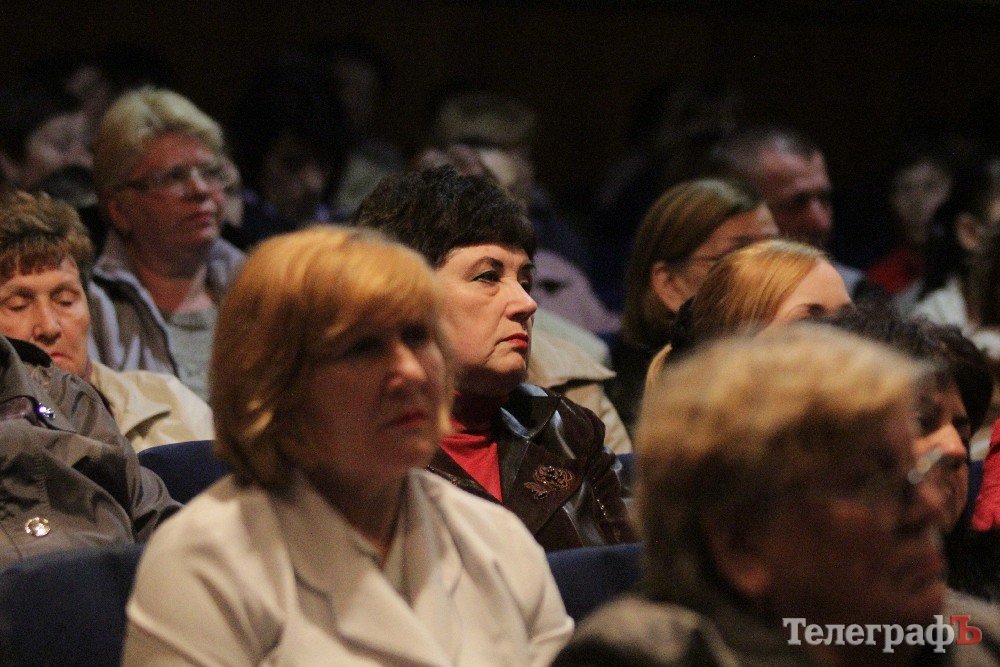 Вел общественные слушания мэр Кременчуга Малецкий. Зал ГДК был заполнен полностью. На 98% публика состояла из женщин средних лет и старше. В партере "ТелеграфЪ" узнавал лица серьезных женщин, которых мы регулярно видим на субботниках, организуемых командой Малецкого, а также на митингах в поддержку городской власти. Депутат Пиддубная показала "Телеграфу" сидевшую в партере активистку, которая однажды во время публичного мероприятия показала ей неприличную комбинацию из пяти пальцев (фигу, короче). Женщины, пришедшие на слушания, знали друг друга, называли по именам и выходили группами.
