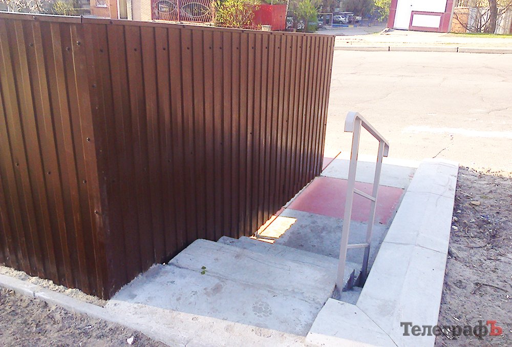 На прошлой неделе в Кременчуге на улице Европейской, возле дома, в котором живёт городской голова Виталий Малецкий, появилась «европейская» мусорная площадка, которую соорудила подрядная организация «Легбудпроект». Площадка с контейнерами ограждена металлическим профилем, к ней ведут три спуска со ступенями. Отдельно выделена площадка для сбора негабаритного мусора.