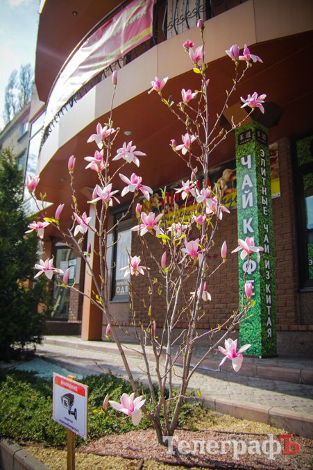 У Кременчуці заквітло екзотичне для нашої місцевості дерево - магнолія. Дерево з рожевими квітами можете знайти на вул. Першотравневій навпроти Кременчуцького національного університету біля кафе “Завітай”.
