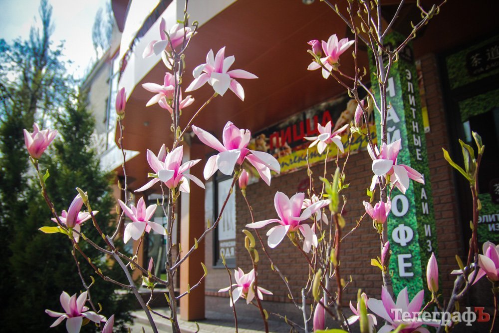 У Кременчуці заквітло екзотичне для нашої місцевості дерево – магнолія. Дерево з рожевими квітами можете знайти на вул. Першотравневій навпроти Кременчуцького національного університету біля кафе “Завітай”.