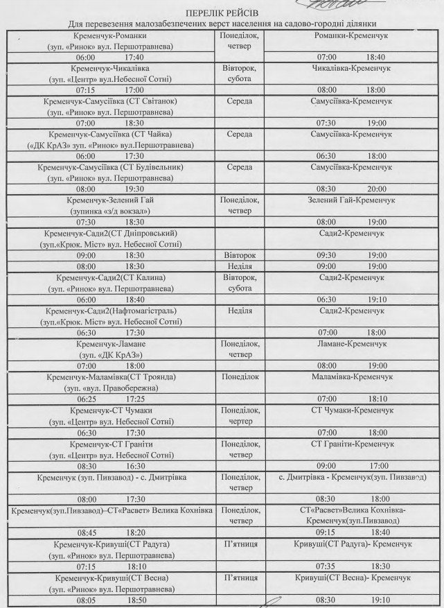 В Кременчуге утвердили список бесплатных рейсовых автобусов для льготников на осенне-весенний период. Об этом сообщает пресс-служба исполкома.