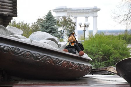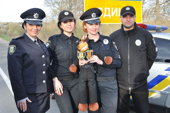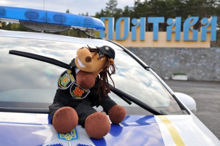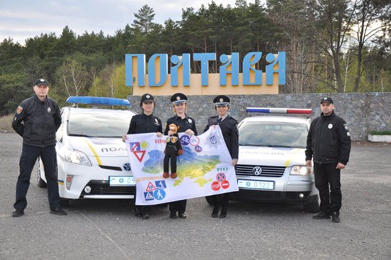 Представники поліції Полтавщини прийняли від колег Харківської області інспектора «Гриву» (іграшковий символ Всеукраїнського проекту) і прапор-мапу із побажаннями учасників естафети.