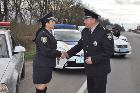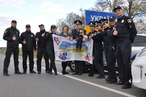 Поліція Полтавщини прийняла естафету, символ та спеціальний прапор, який за час проведення флешмобу «БДР-challenge» з безпеки дорожнього руху побував у різних областях України.