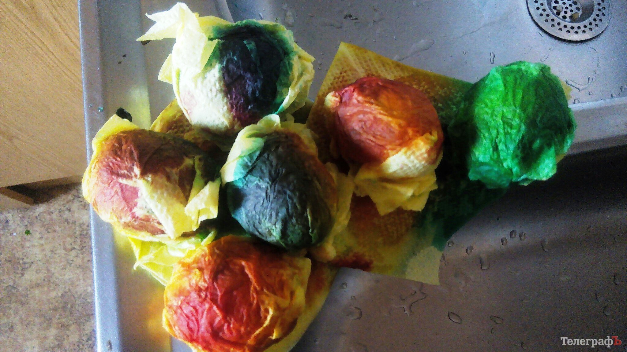 4. Дайте яйцам полежать немного в окрашенных салфетках.