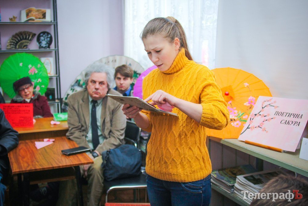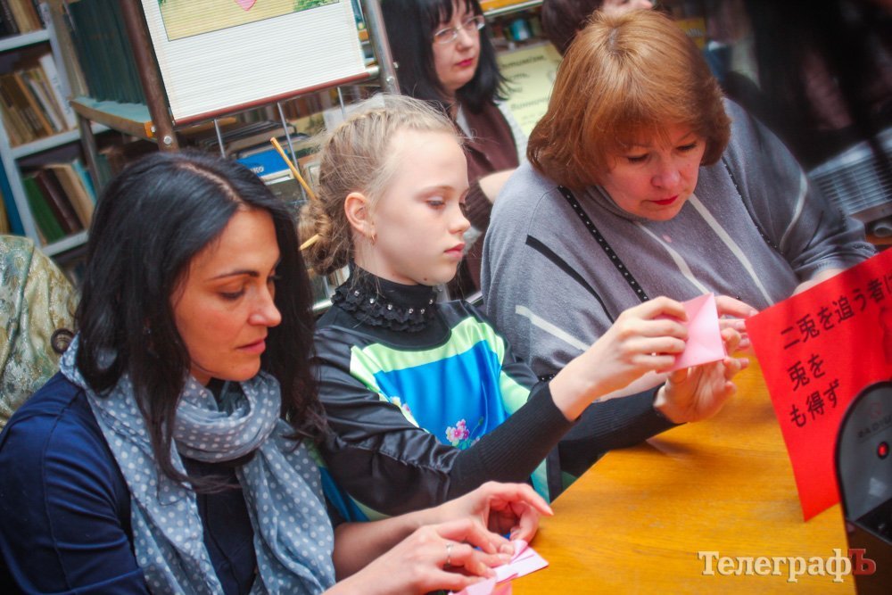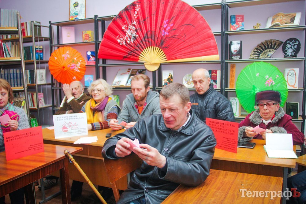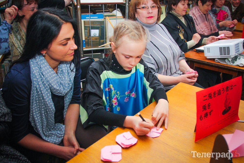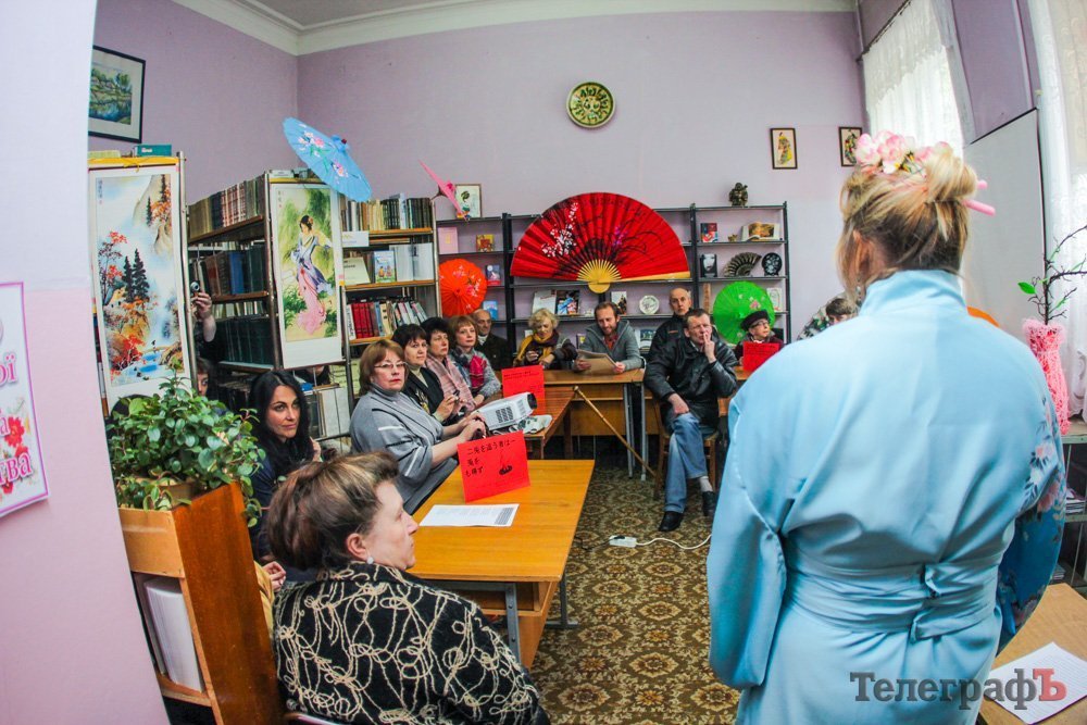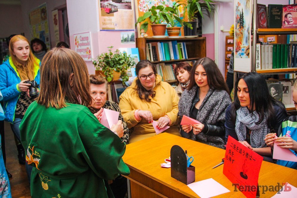 19 апреля в отделе абонемента ЦБС им. М. Горького кременчужане на полтора часа смогли прикоснуться к культуре Страны Восходящего Солнца: библиотекари-гейши, оригами, японская поэзия, японско-украинские загадки, театраральная постановка… И всё это под сенью «Цветущей сакуры».