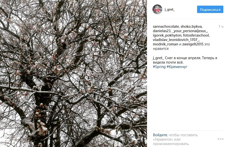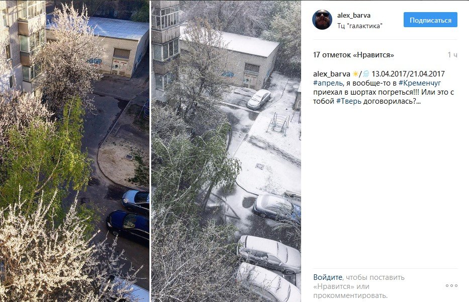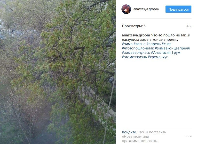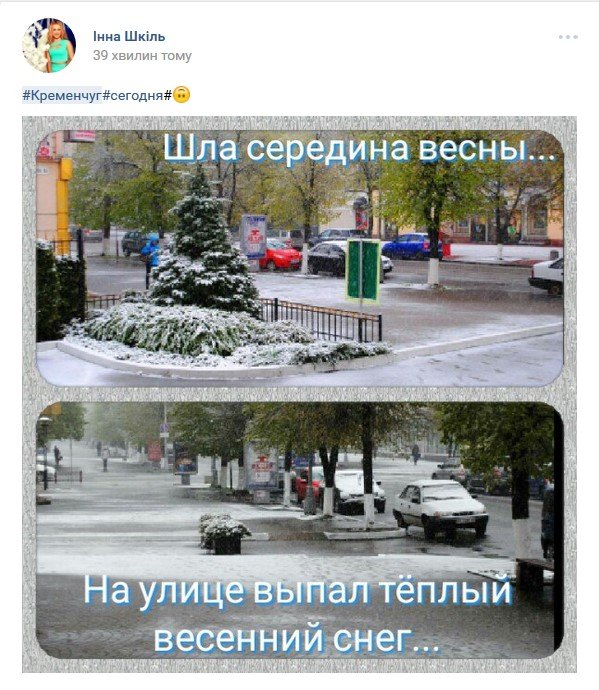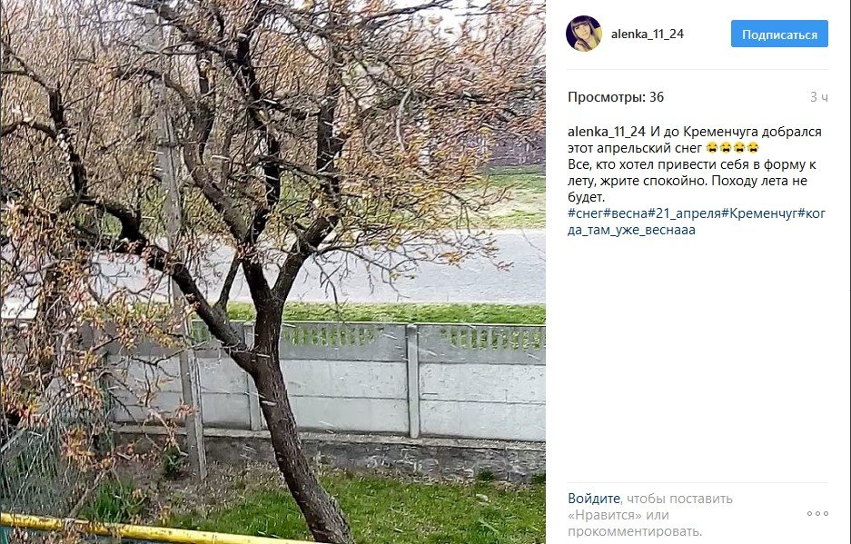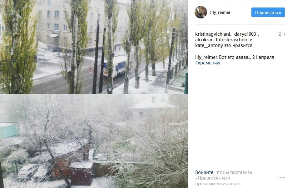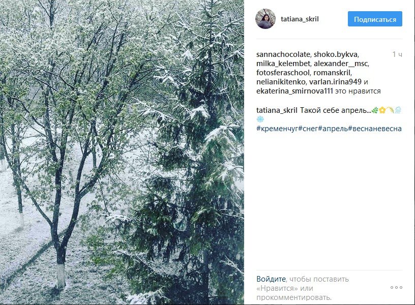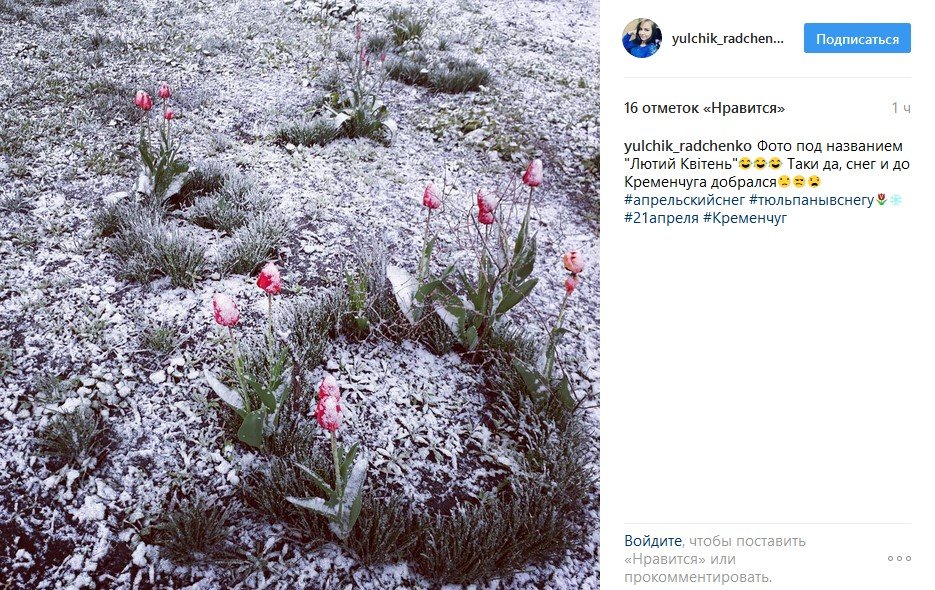 Зима подкралась к нам незаметно и сразу же заполонила не только кременчугские дворы, но и соцсети. Согласно прогнозу погоды, уже завтра потеплеет, так что если ты ещё не успел сфотографировать апрельский снег, то поспеши... Вот такой вот «лютий квітень» постили кременчужане в Vk и Instagram: