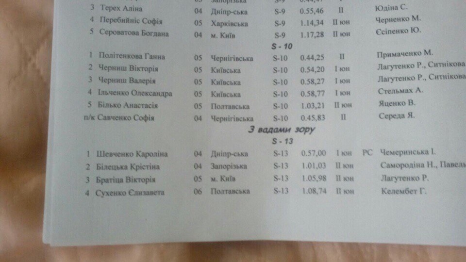 Младшую группу представляли пловцы 2004-2006 годов рождения, а старшую - 2002-2003. Самой младшей в команде была как раз кременчужанка Елизавета Сухенко, и её дебют оказался очень удачным. На дистанции 50 метров вольным стилем Лиза заняла третье место, а на дистанции в 100 метров на спине - стала серебряной призеркой Всеукраинской спартакиады. Кроме того, на дистанциях 50 и 100 метров на спине она выполнила норматив второго юношеского разряда.