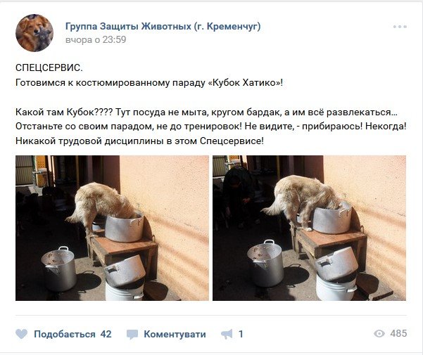 В КП «Спецсервис-Кременчуг» начали готовить своих воспитанников к костюмированному параду животных «Кубок Хатико», который состоится в Кременчуге 14 мая. Об этом 26 апреля в Vk сообщила заместитель директора «Спецсервиса» Марина Кожушко.