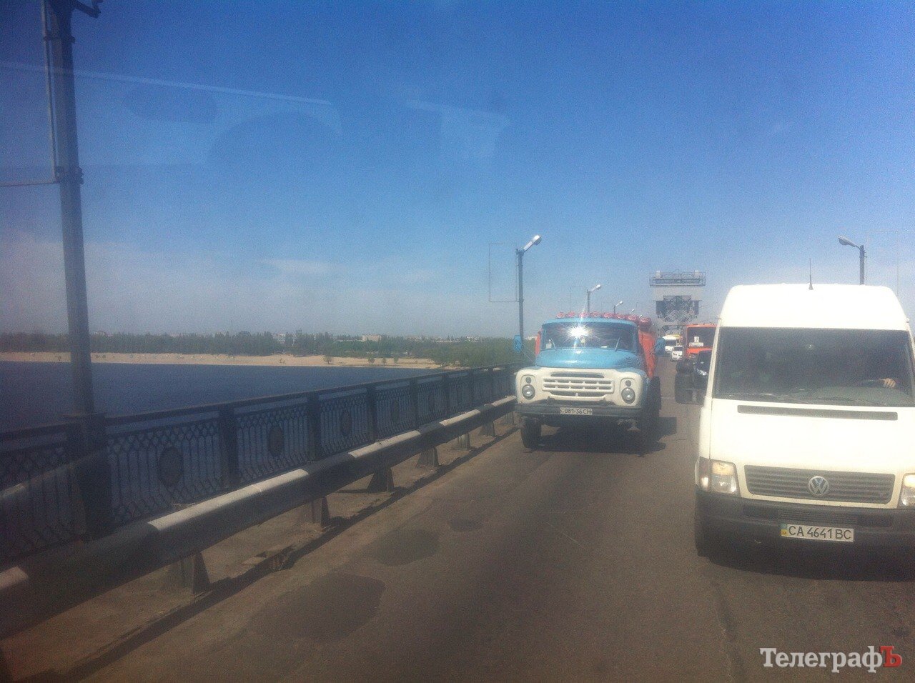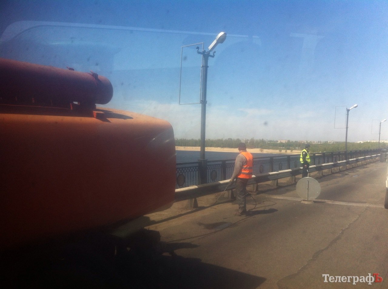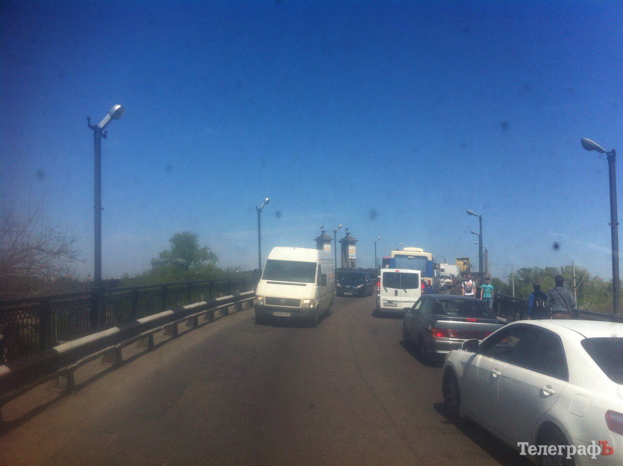 Сегодня 28 апреля на Крюковском мосту моют колесоотбойники. Как сообщают автомобилисты, из-за этого образовалась пробка.