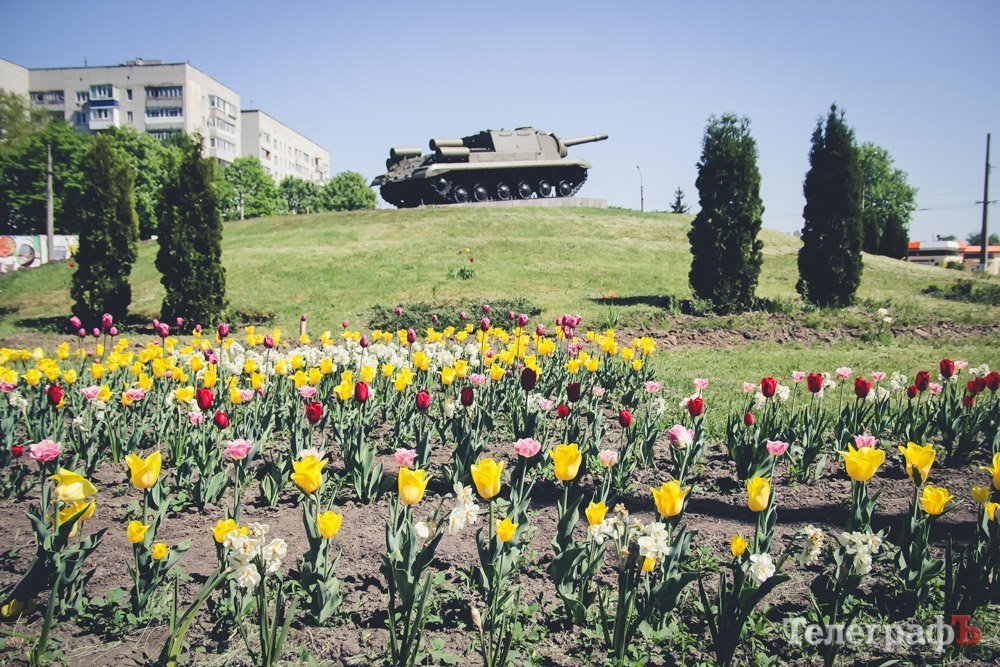 Весной все расцветает. А в Кременчуге даже самоходная установка ИСУ-152 на Пивзаводовском кругу.