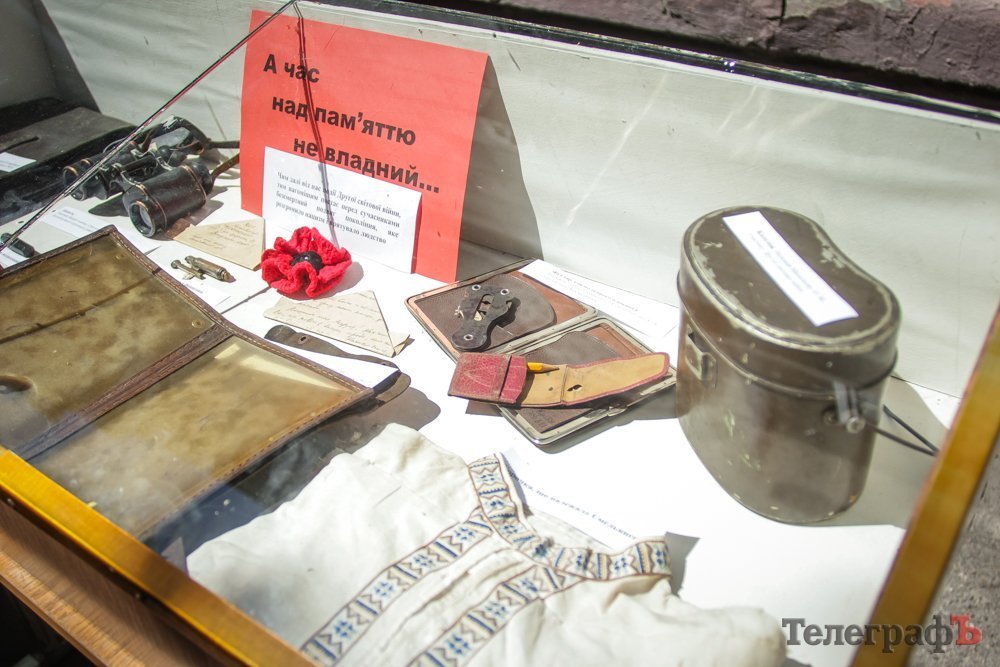 Другий розділ «А час над пам’яттю не владний…» представив Кременчуцький краєзнавчий музей. У вітрині під склом можна було побачити предмети вжитку воєнних років: флягу, командирський планшет, бінокль, листи-трикутники та ін. Особливу увагу і цікавість кременчужан викликав гучномовець 1938 року, який був розміщений на фасаді бібліотеки.