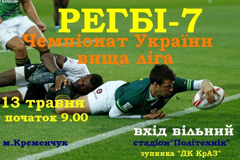 13 травня у Кременчуці відбудеться чемпіонат України з регбі-7 Вища ліга. До Кременчука приїдуть 12 команд з: Києва, Запоріжжя, Харкова, Дніпра, Покровського, Хмельницького, Тернополя, Івано-Франківська та Київської області.