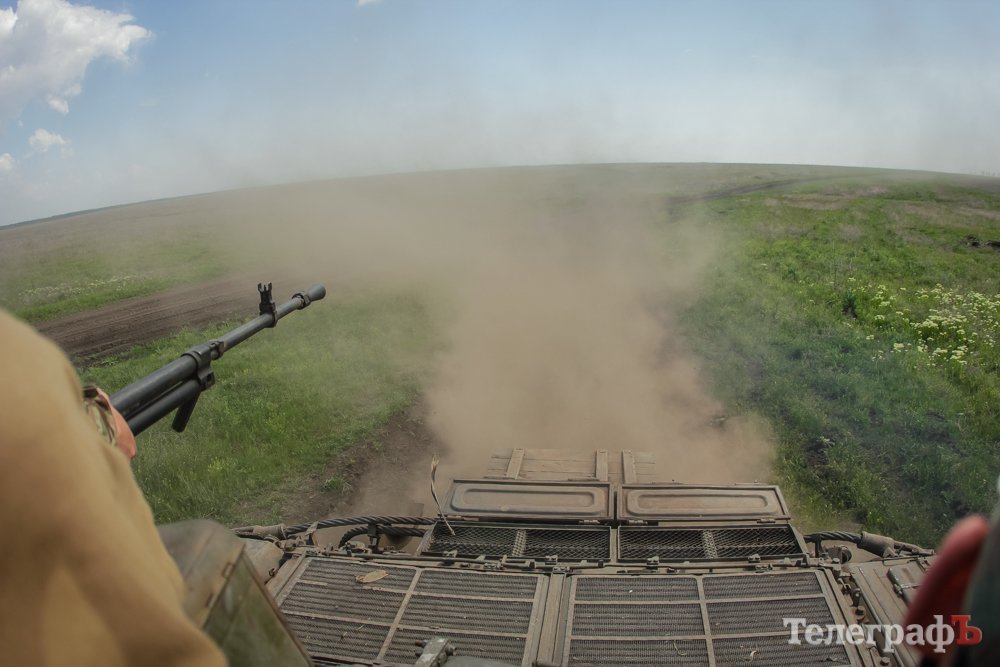 На полігоні «Широкий Лан» журналісти Телеграфу протестували танк Т-72. Бойова машина вагою близько 40 т розвиває швидкість до 60 км/год. Довжина танку 9,5 метра, висота – 2,2 метра.