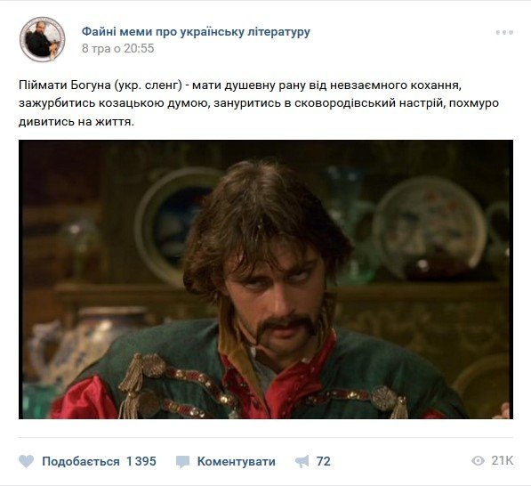 Більше 118 тисяч підписників у Vk та 3 тисяч у Facebook стежать за цим літературним пабліком та чекають на нові меми.
